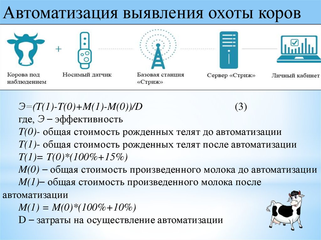 Автоматизация выявления охоты коровЭ=(T(1)-T(0)+M(1)-M(0))/D