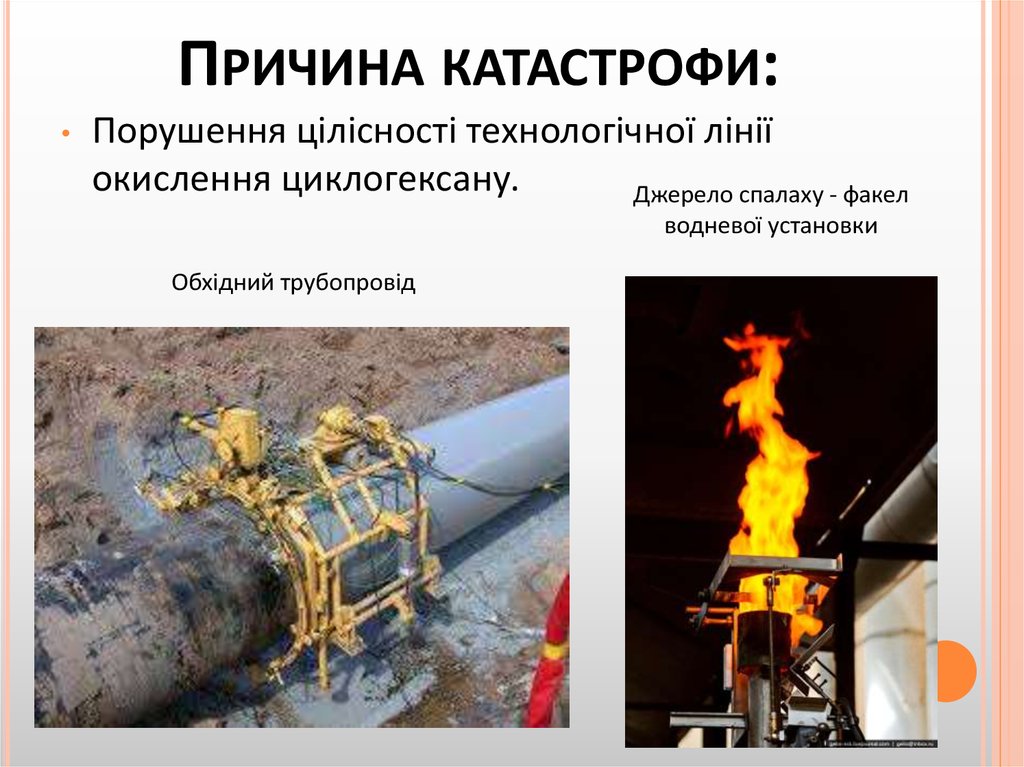 ПРИЧИНА КАТАСТРОФИ:Порушення цілісності технологічної лінії