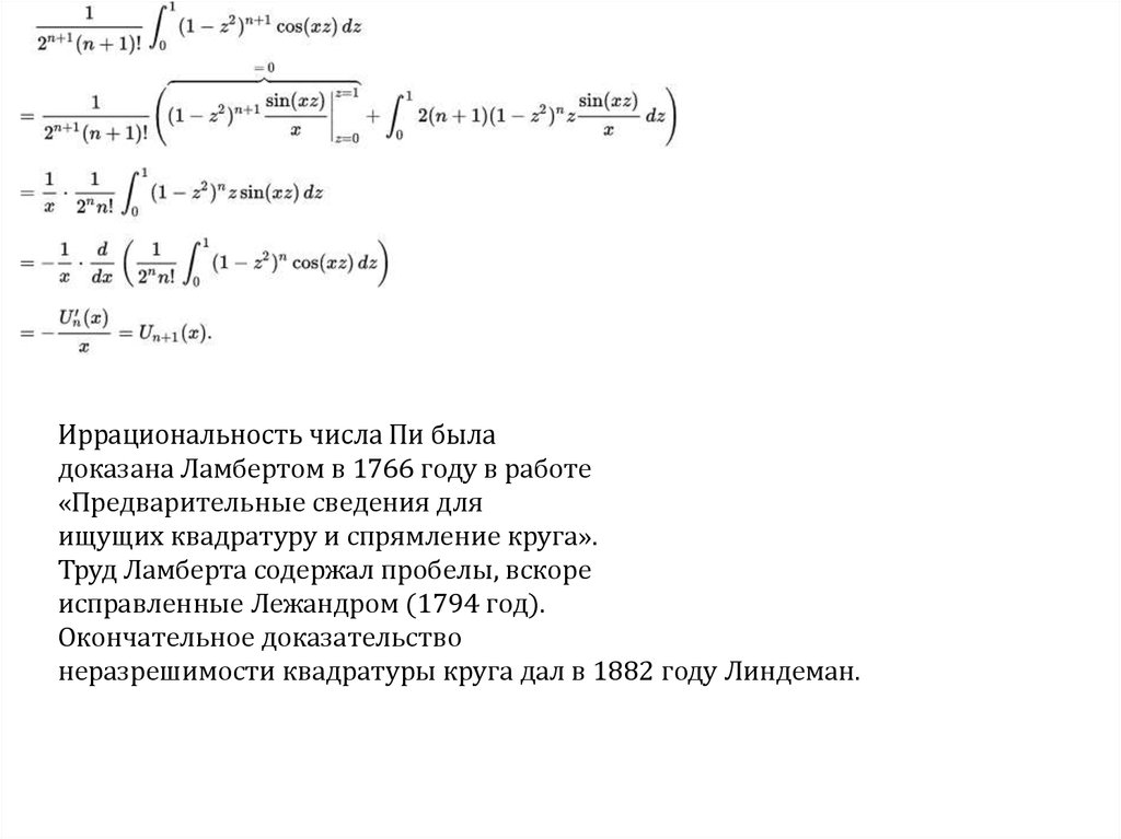 Иррациональность числа Пи быладоказана Ламбертом в 1766 году в работе