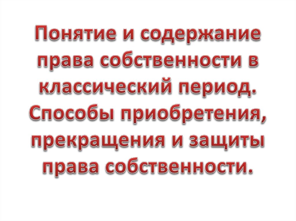 1. Понятие и содержание права собственности в классический период. Способы приобретения, прекращения и защиты права собственности.