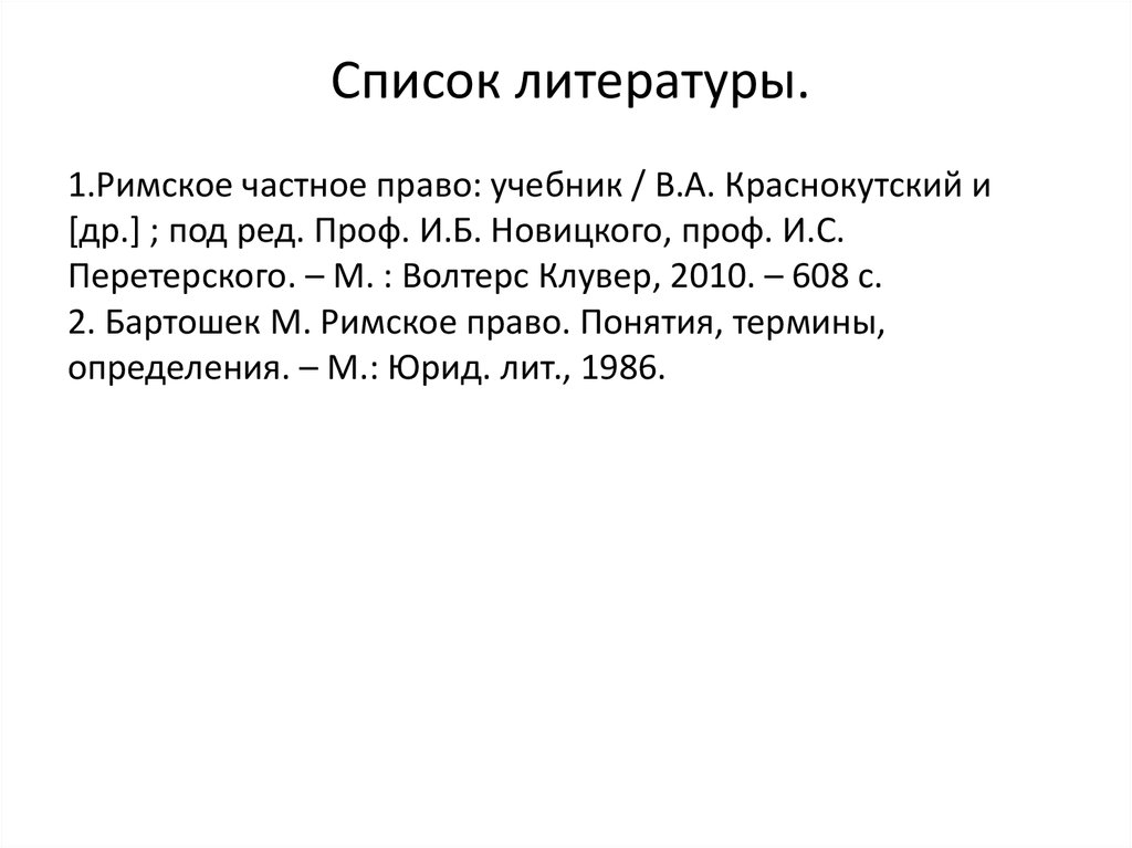 Список литературы.1.Римское частное право: учебник / В.А. Краснокутский и