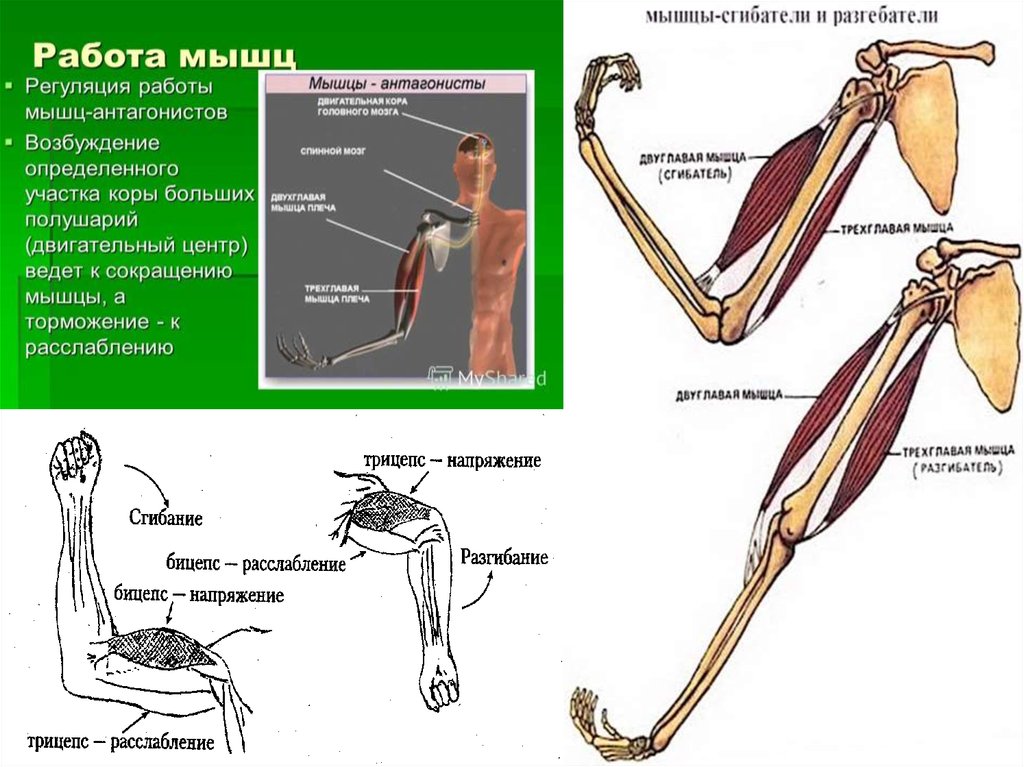 (например, мышцы сгибатели - разгибатели плеча).