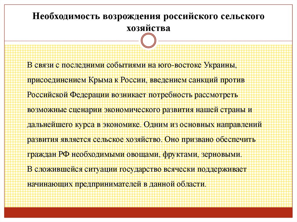 Необходимость возрождения российского сельскогохозяйства