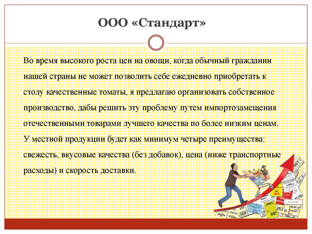 ООО «Стандарт»Во время высокого роста цен на овощи, когда обычный гражданин