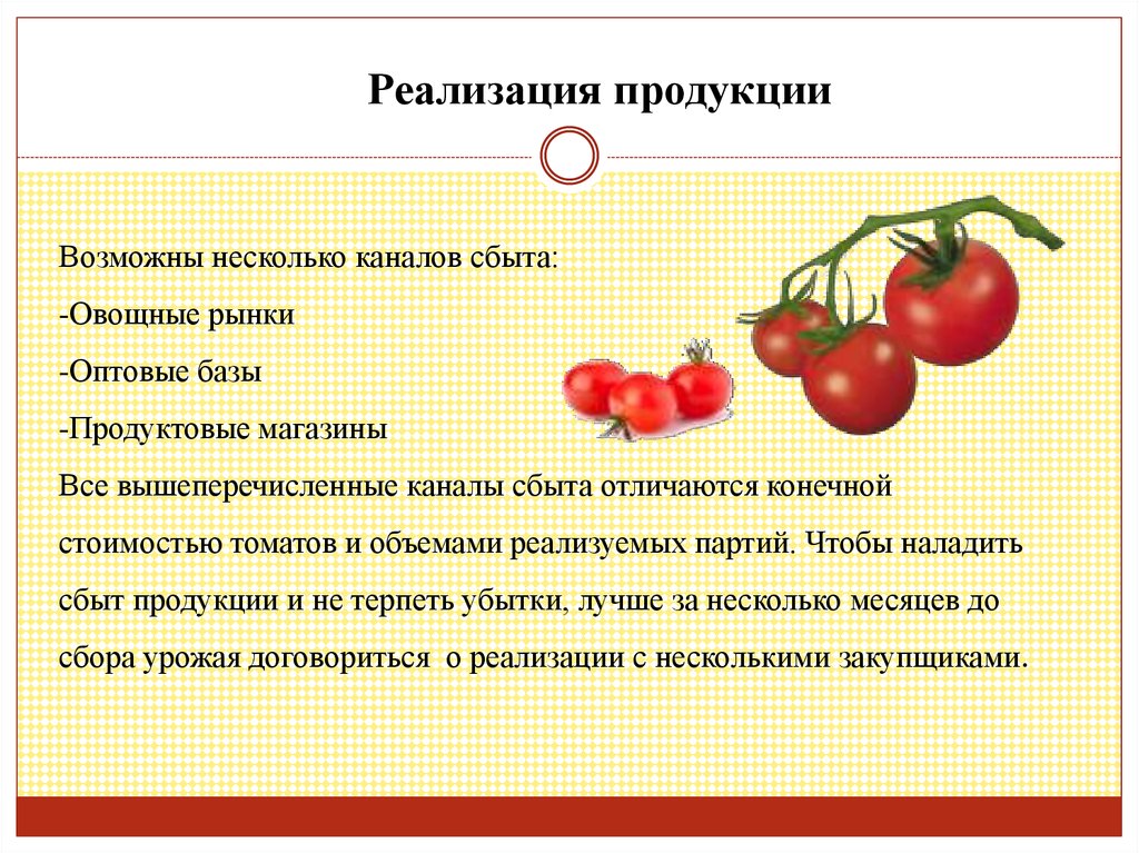 стоимостью томатов и объемами реализуемых партий. Чтобы наладить