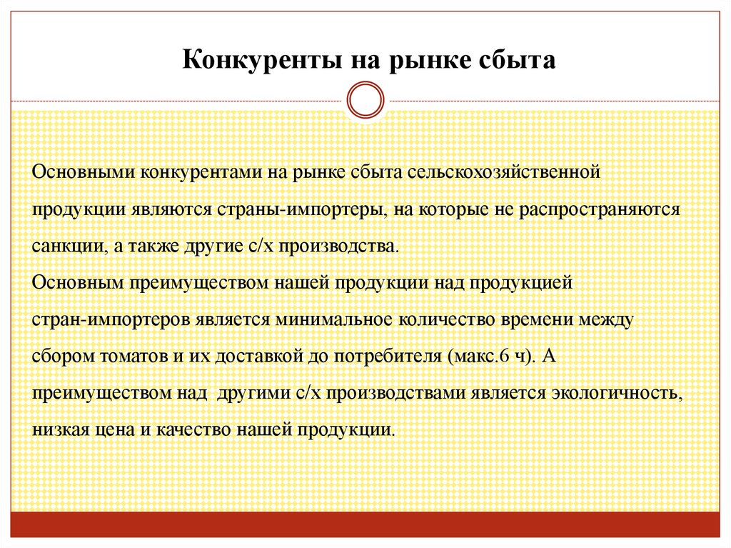 Конкуренты на рынке сбытаОсновными конкурентами на рынке сбыта сельскохозяйственной