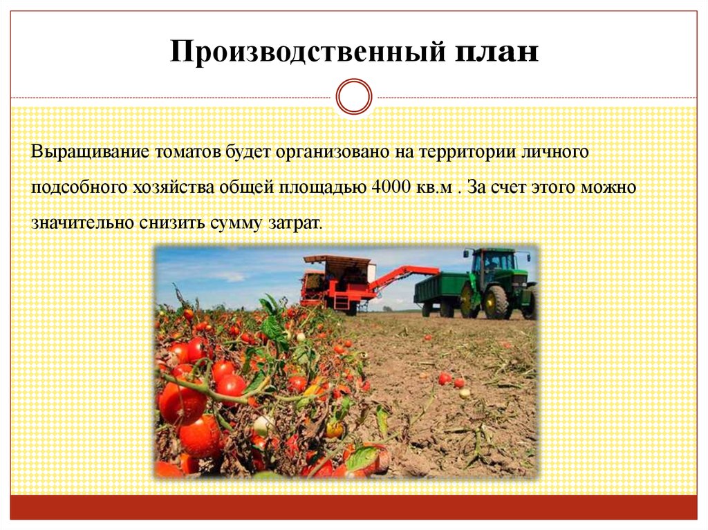 Производственный планВыращивание томатов будет организовано на территории личного