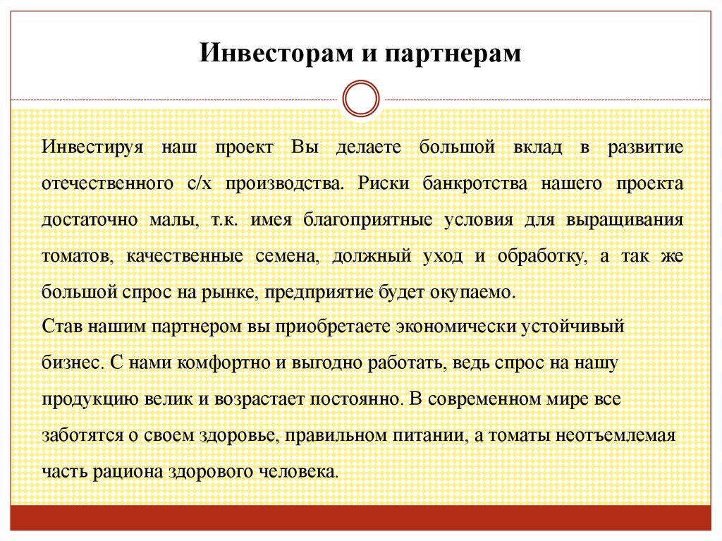 Инвесторам и партнерамИнвестируя наш проект Вы делаете большой вклад в развитие