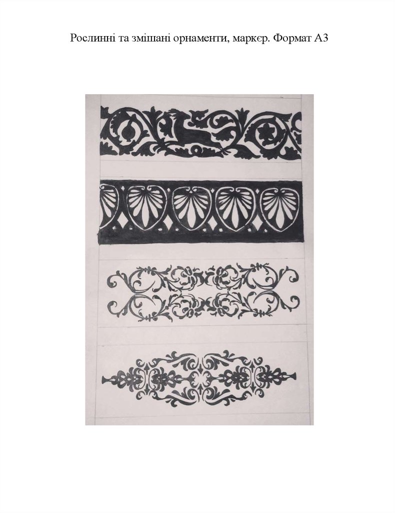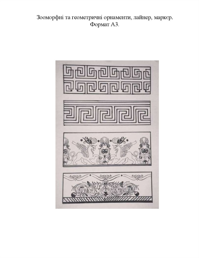Зооморфні та геометричні орнаменти, лайнер, маркєр.Формат А3.