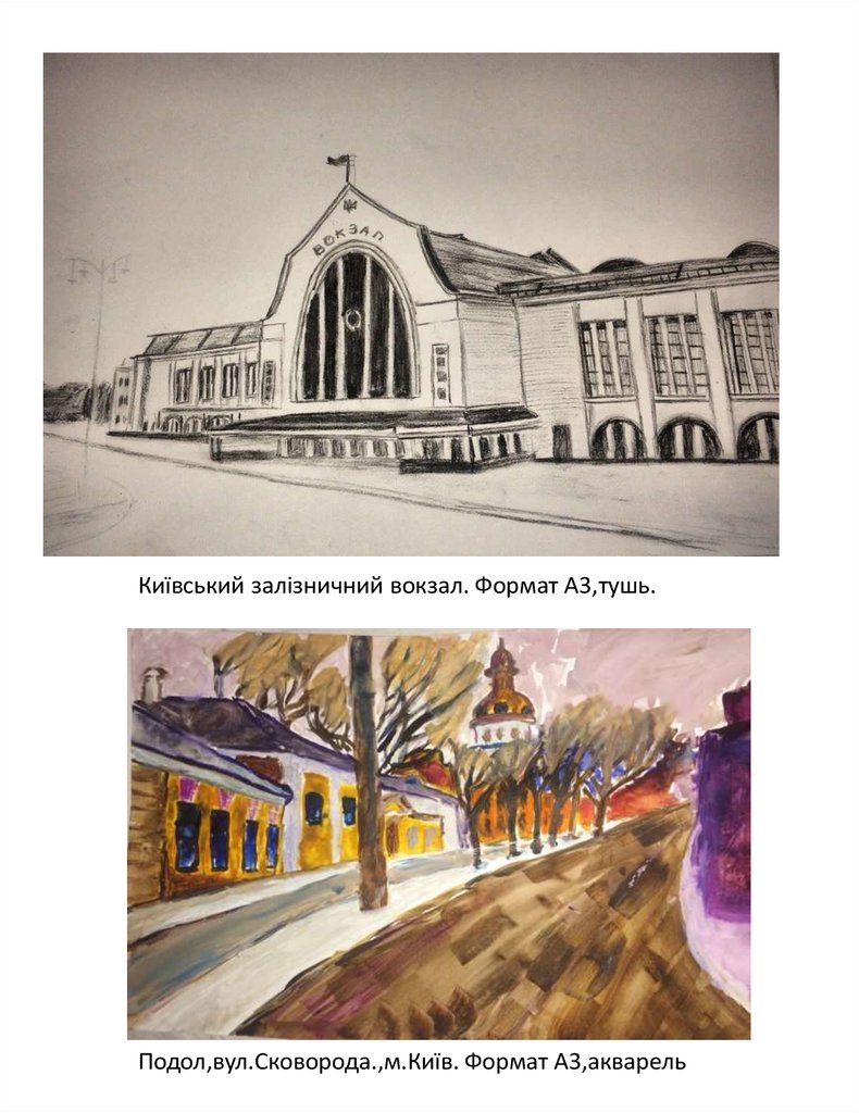 Київський залізничний вокзал. Формат А3,тушь.Подол,вул.Сковорода.,м.Київ. Формат А3,акварель