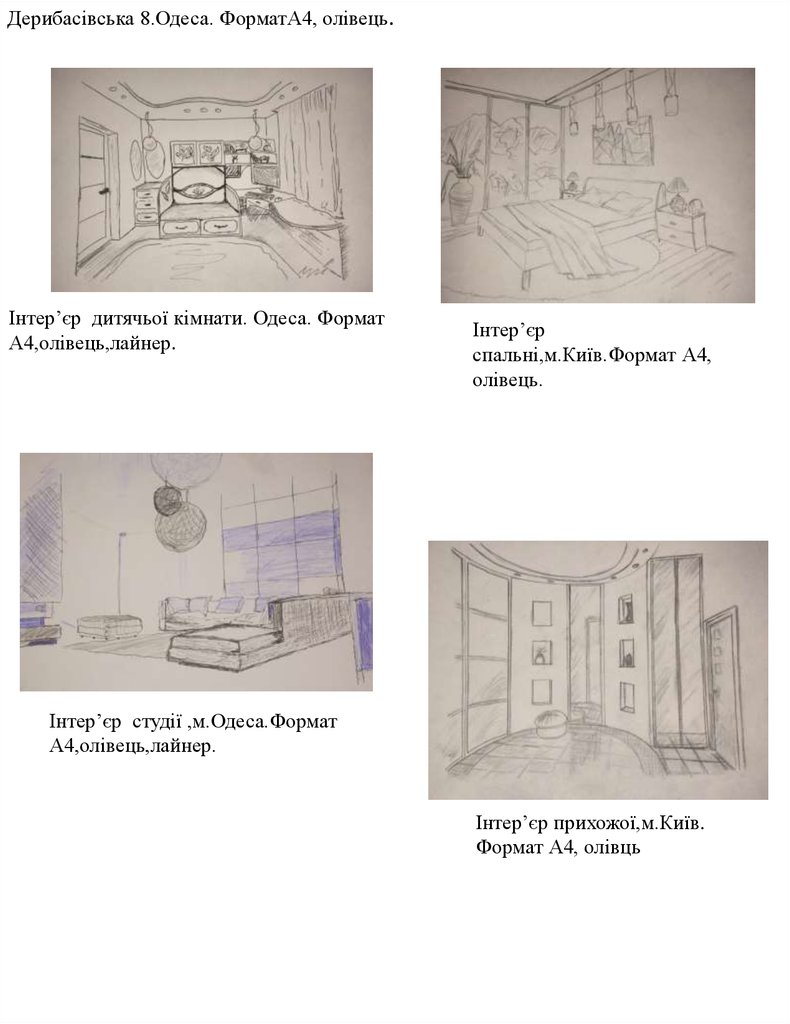 Дерибасівська 8.Одеса. ФорматА4, олівець.Інтер’єр дитячьої кімнати. Одеса. Формат