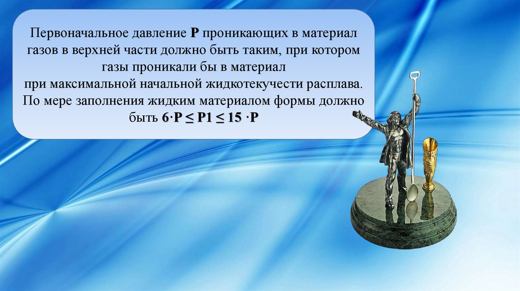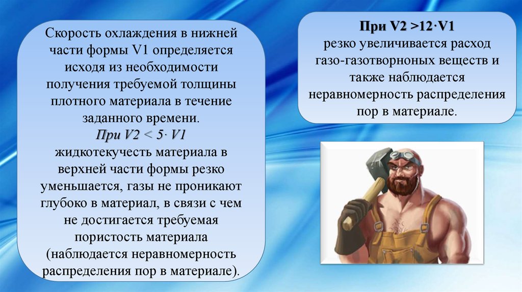 Количество газов, поступающих в материал верхней части получаемойотливки должно быть таким, чтобы газы проходили через материал,