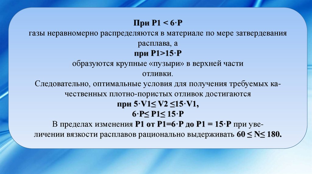 Следовательно, оптимальные условия для получения требуемых качественных плотно-пористых отливок достигаются