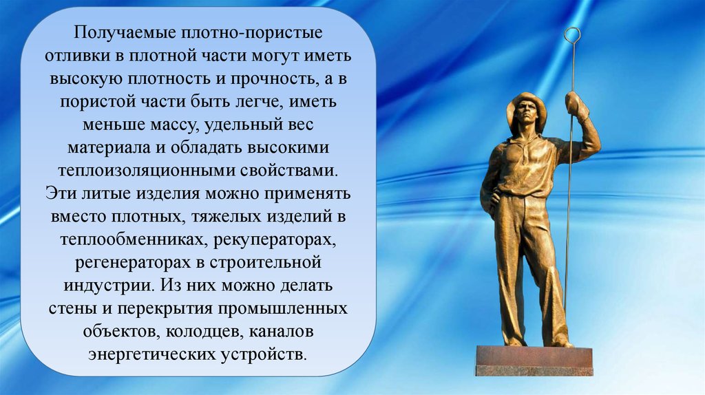 теплоизоляционными свойствами. Отливки предназначались для перекрытия