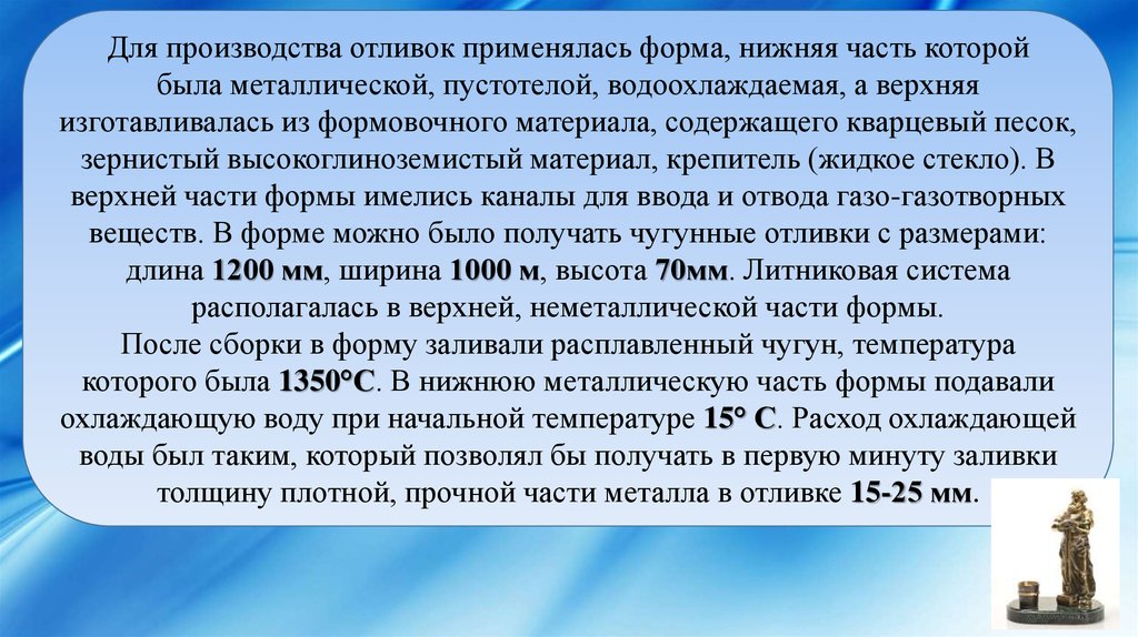веществ. В форме можно было получать чугунные отливки с размерами: