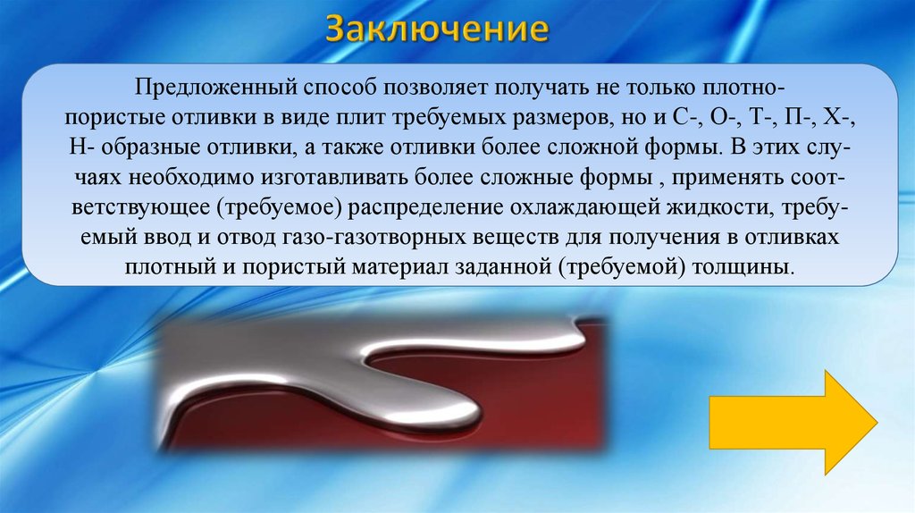 который заливают в форму с перегревом на 50-150˚. При этом согласно