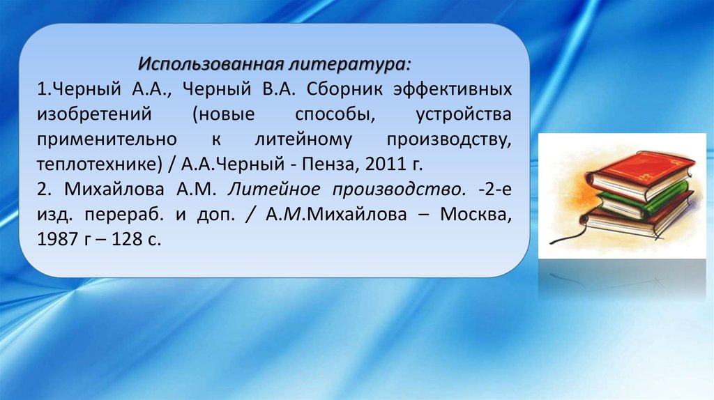 Использованная литература:1.Черный А.А., Черный В.А. Сборник эффективных