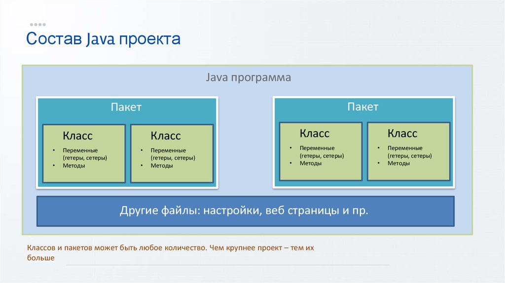 Классов и пакетов может быть любое количество. Чем крупнее проект – тем их