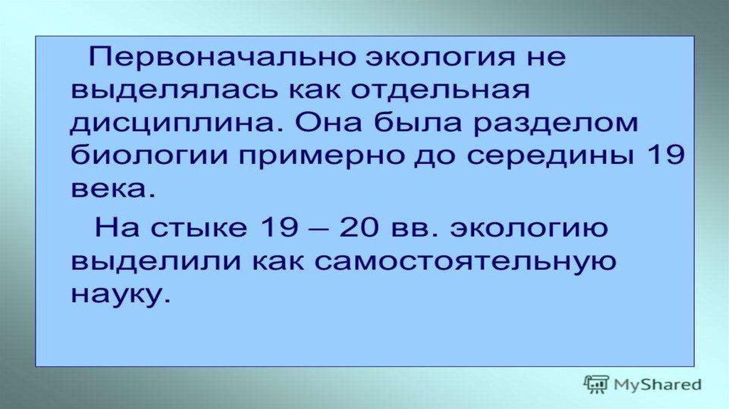 • Становление экологии как самостоятельной наукой.• Периоды развития экологии.