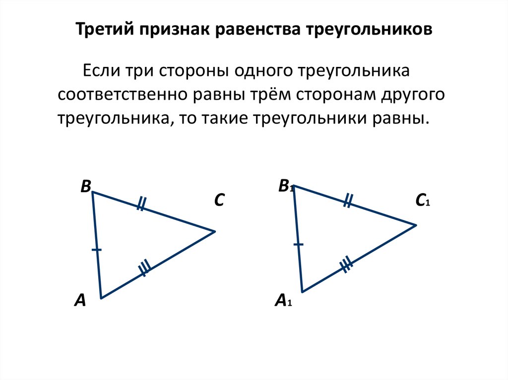 Третий признак равенства треугольниковЕсли три стороны одного треугольника