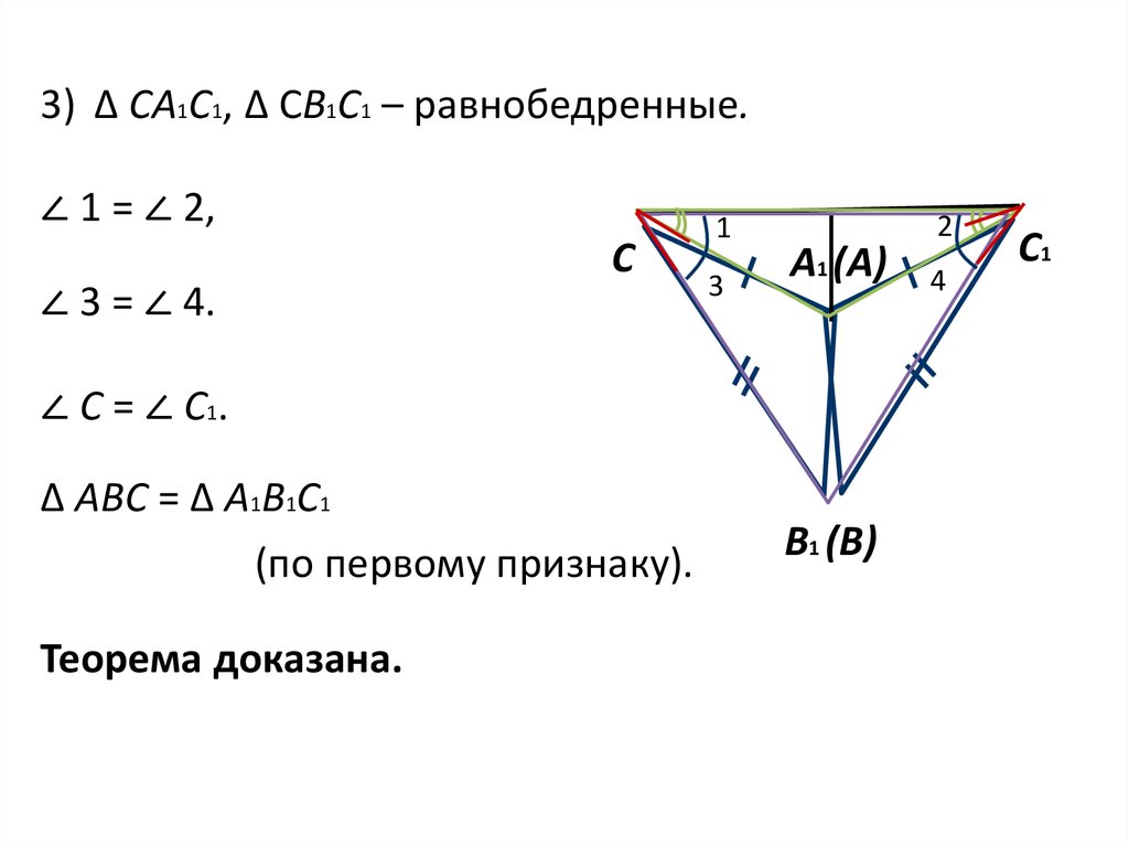3) ∆ СА1С1, ∆ СВ1С1 – равнобедренные.∠ 1 = ∠ 2,