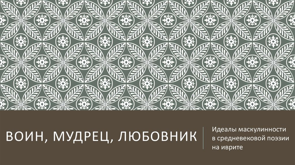 Воин, мудрец, любовник. Идеалы маскулинности в средневековой поэзии на иврите
