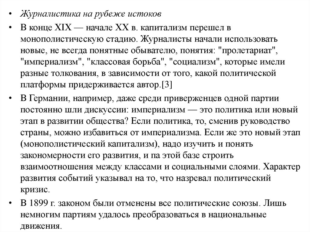 • Журналистика на рубеже истоков• В конце XIX — начале XX в. капитализм перешел в
