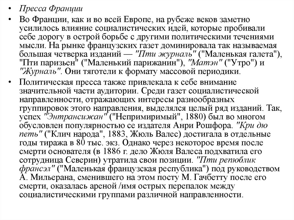 • Пресса Франции• Во Франции, как и во всей Европе, на рубеже веков заметно