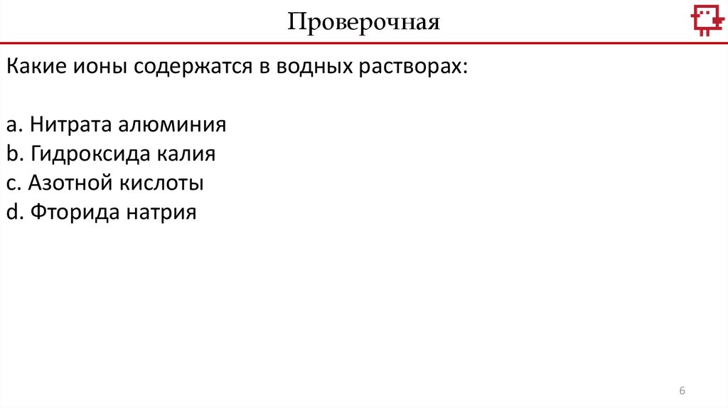 ПроверочнаяКакие ионы содержатся в водных растворах:
