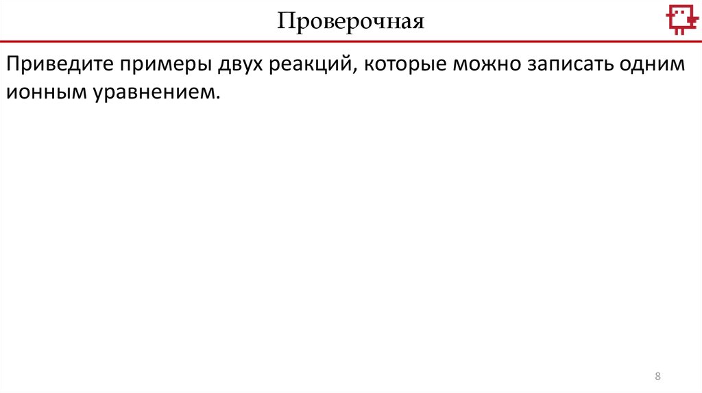 ПроверочнаяПриведите примеры двух реакций, которые можно записать одним
