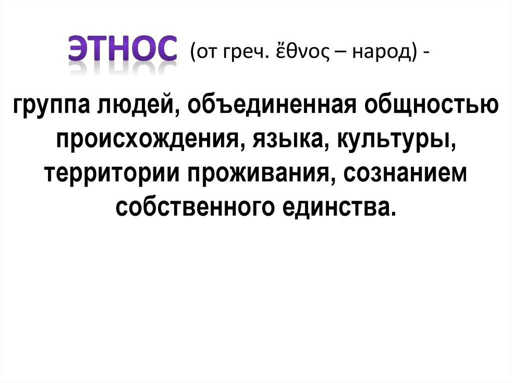 (от греч. ἔθνος – народ) -группа людей, объединенная общностью