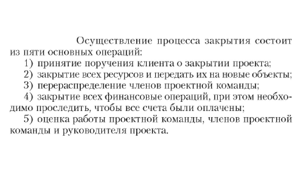 досрочного закрытия проекта