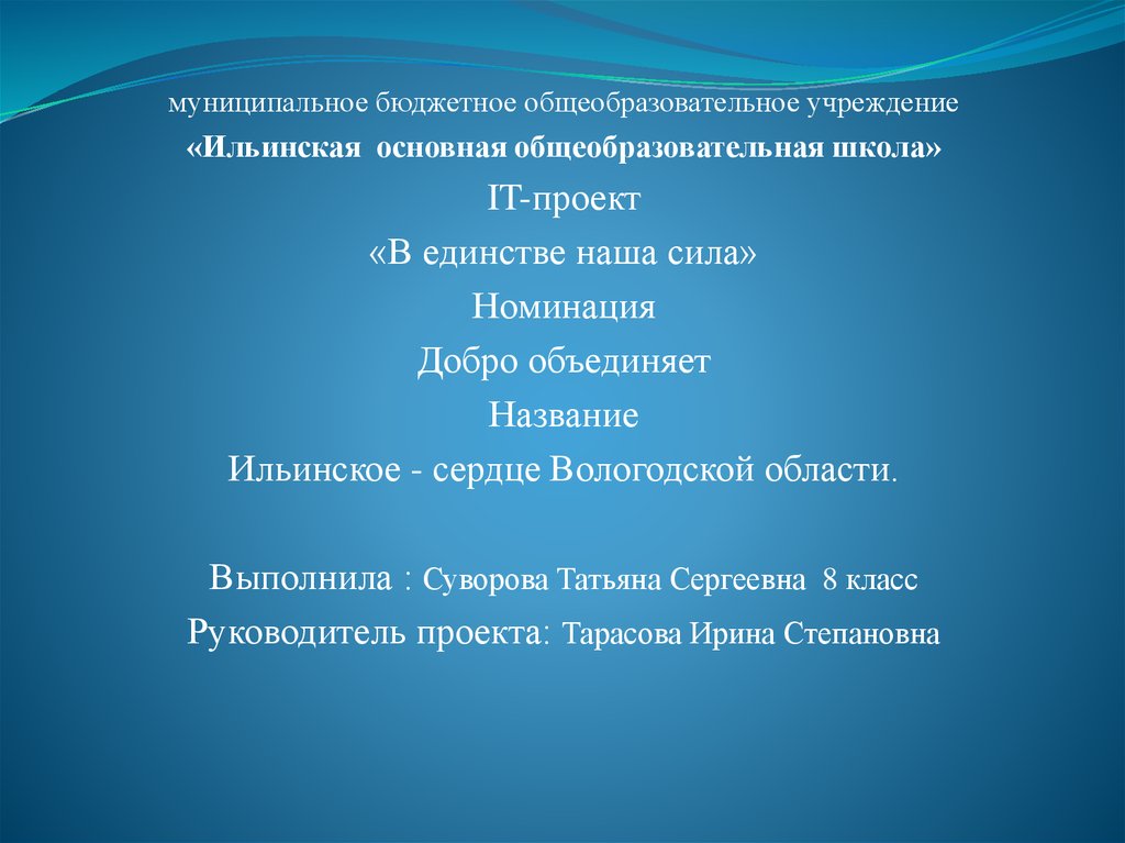 IT- проект. В единстве наша сила. Ильинское - сердце Вологодской области