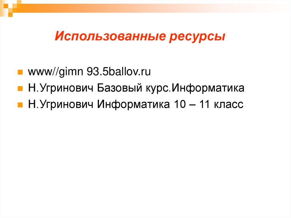 Использованные ресурсыwww//gimn 93.5ballov.ru