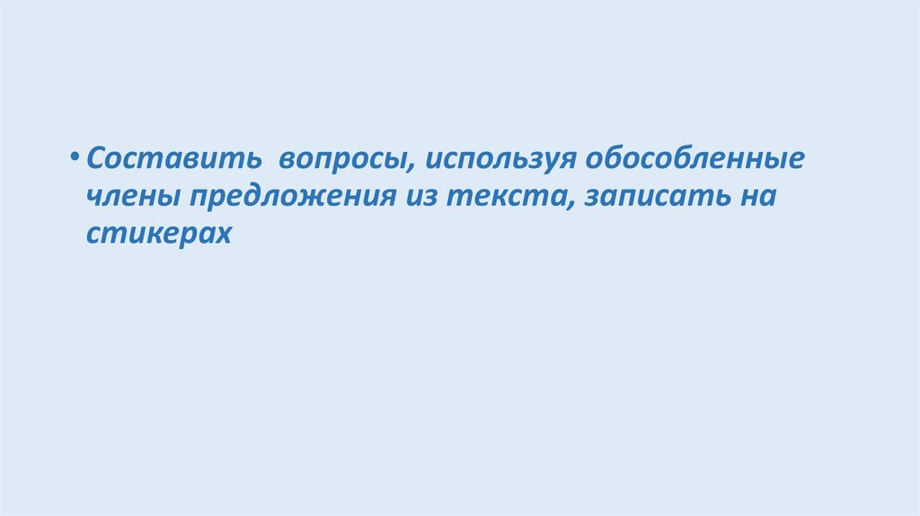 • Составить вопросы, используя обособленныечлены предложения из текста, записать на
