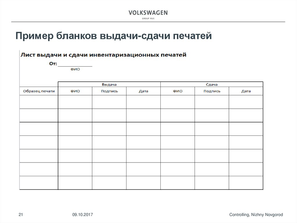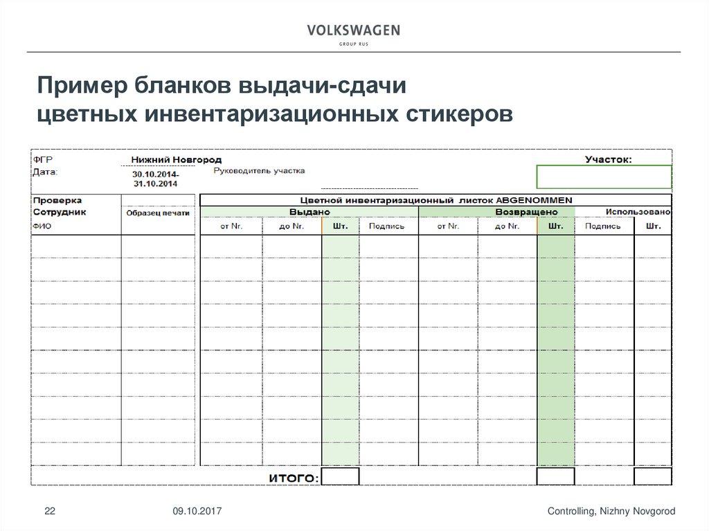 Пример бланков выдачи-сдачицветных инвентаризационных стикеров