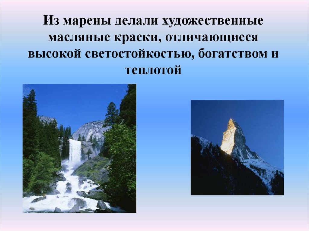 Из марены делали художественныемасляные краски, отличающиеся