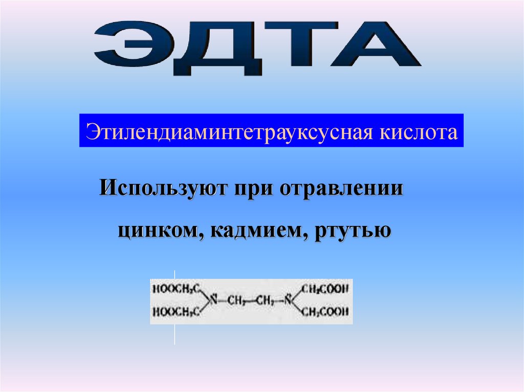 Этилендиаминтетрауксусная кислотаИспользуют при отравлении