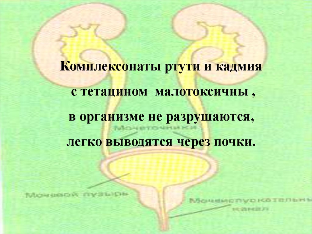 Комплексонаты ртути и кадмияс тетацином мало токсичны,
