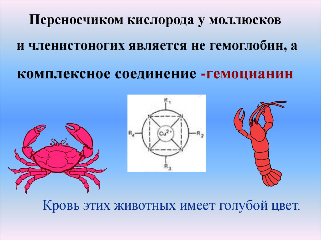 Переносчиком кислорода у моллюскови членистоногих является не гемоглобин, а