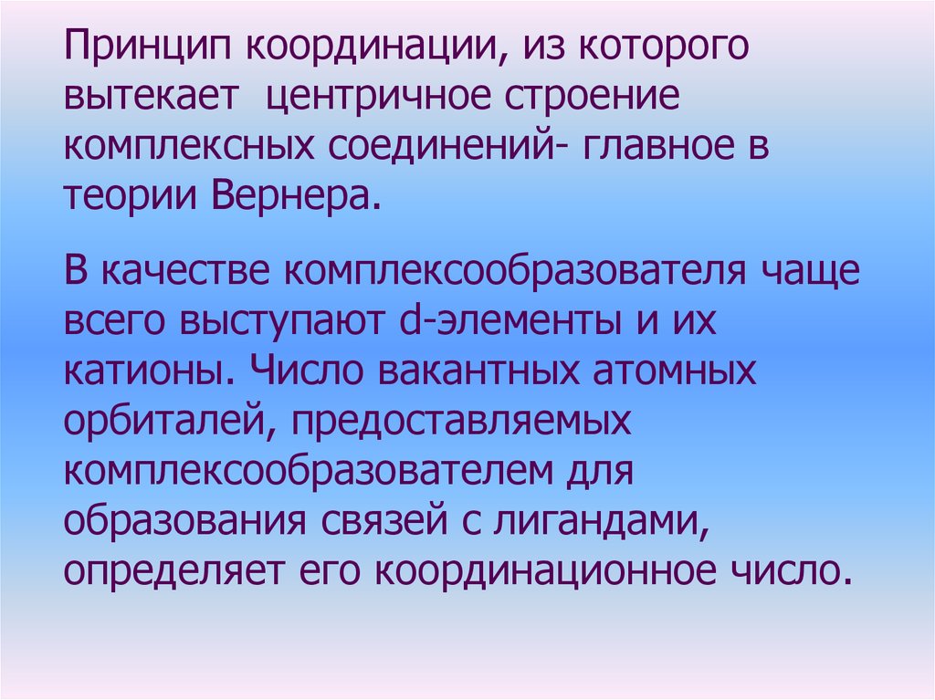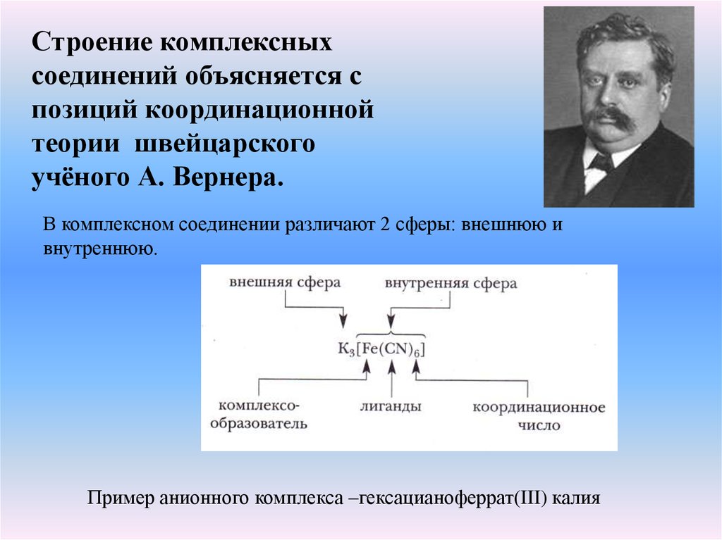 Строение комплексныхсоединений объясняется с