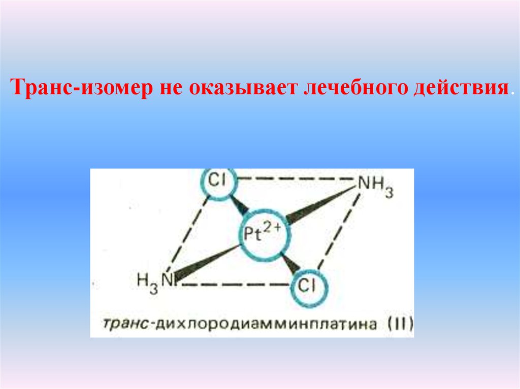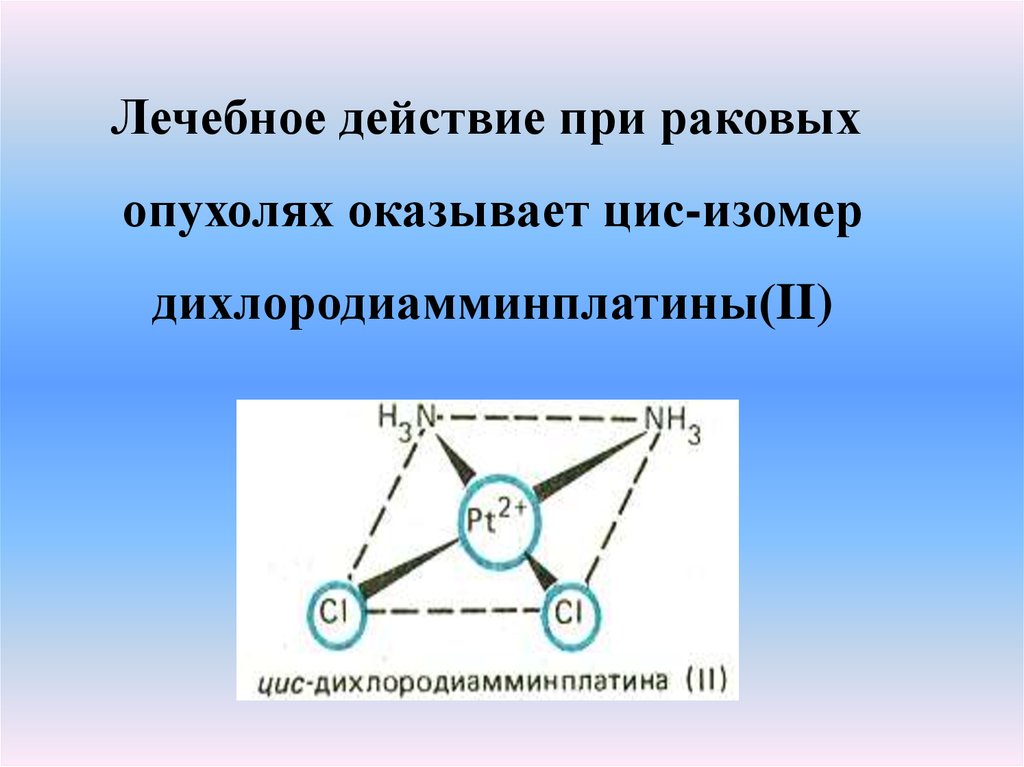 Лечебное действие при раковыхопухолях оказывает цис-изомер