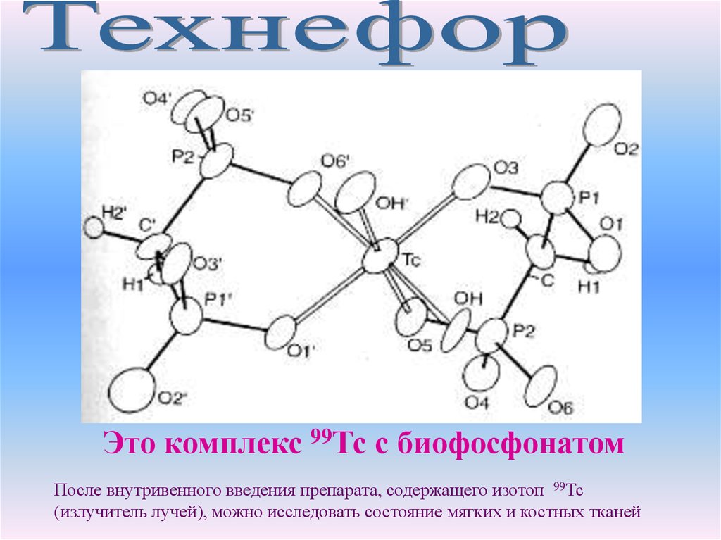 Это комплекс 99Тс с биофосфонатомПосле внутривенного введения препарата, содержащего изотоп 99Тс