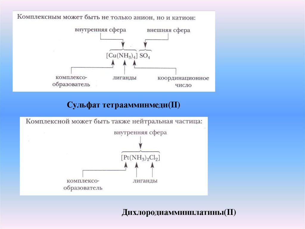 Сульфат тетраамминмеди(II)Дихлородиамминплатины(II)
