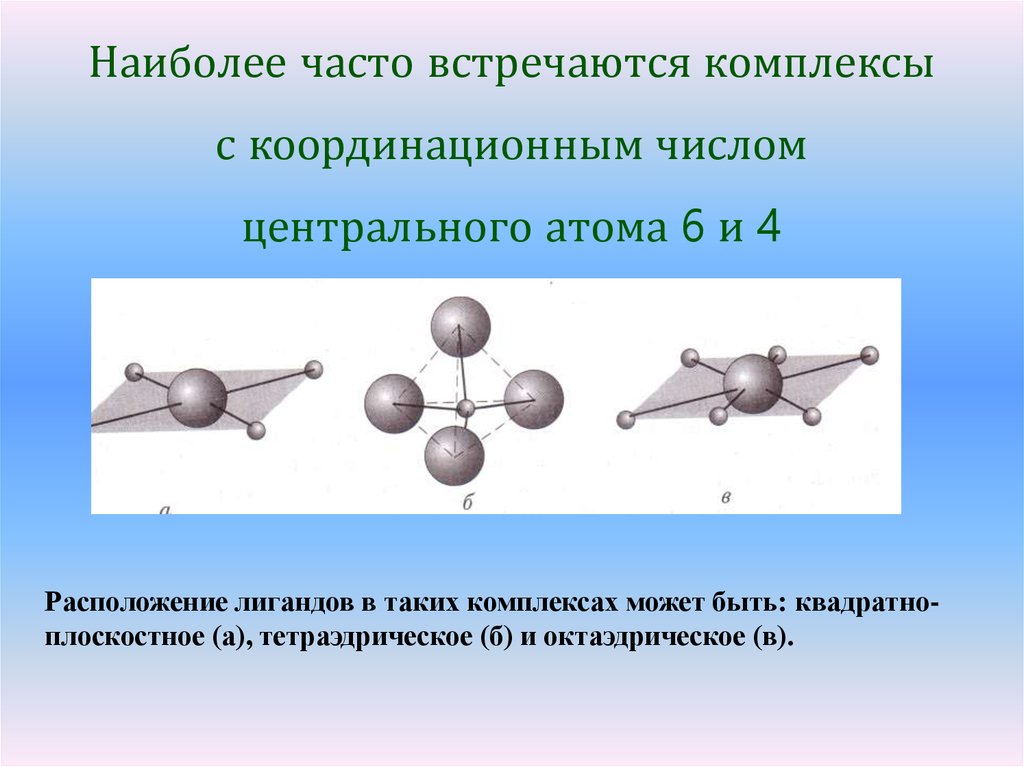 Наиболее часто встречаются комплексыс координационным числом