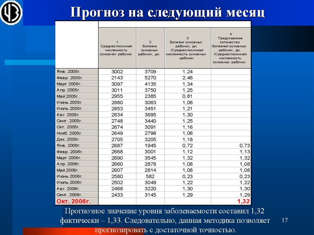 данных и определении их прогнозных
