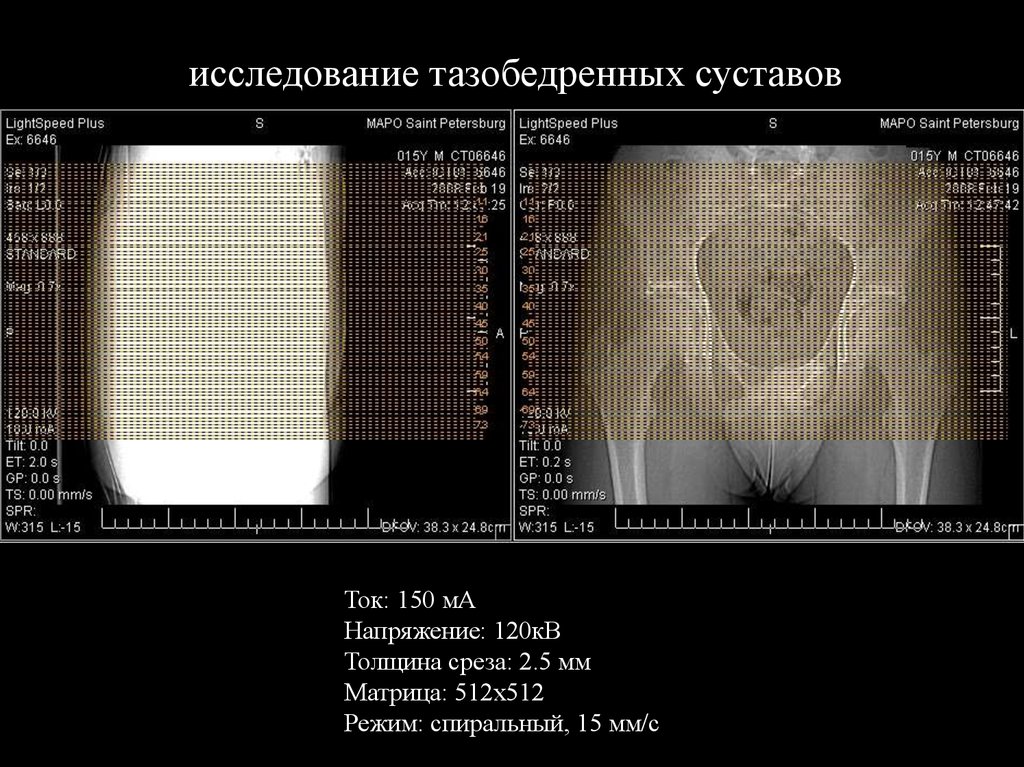 исследование тазобедренных суставовТок: 150 мА