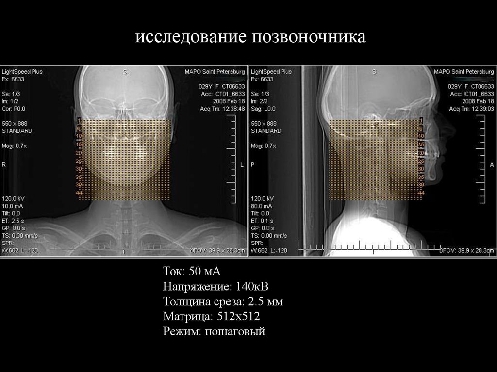 исследование позвоночникаТок: 50 мА