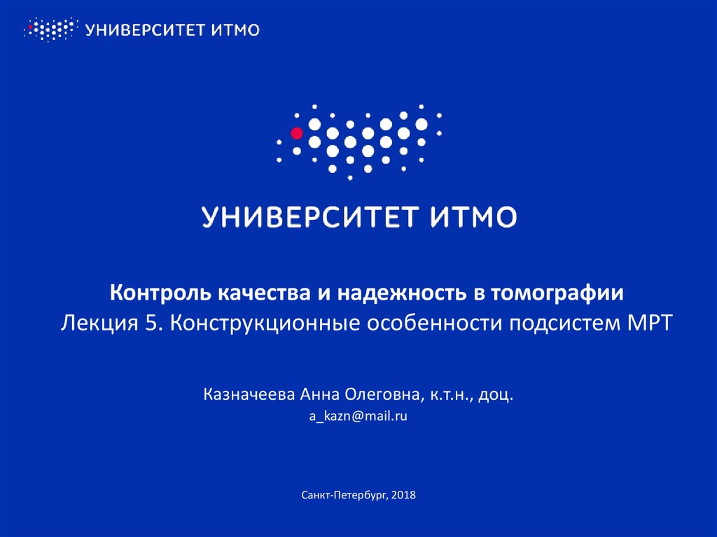 1. Контроль качества и надежность в томографии Лекция 5. Конструкционные особенности подсистем МРТ