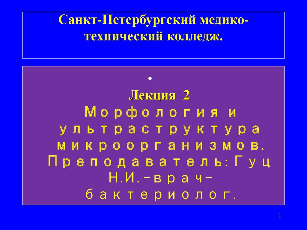 Санкт-Петербургский медикотехнический колледж.Лекция 2